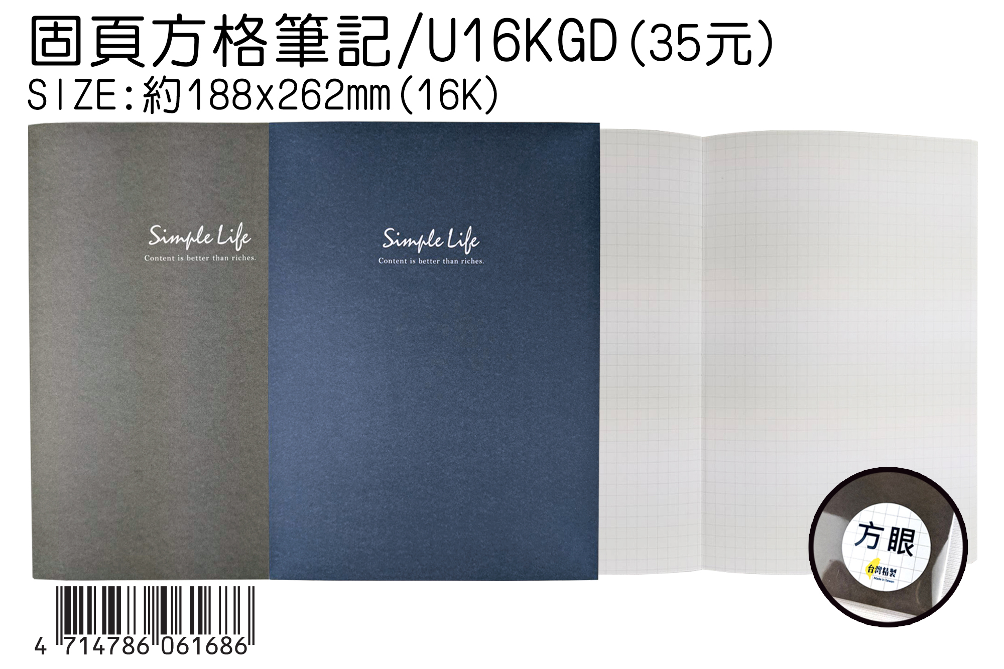 16K 固頁方格筆記 U-16KGD