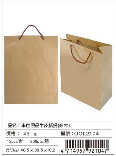 本色原品 牛皮紙提袋(大) 品號:OGL2104 (尺寸:30*39.5*10.2cm)