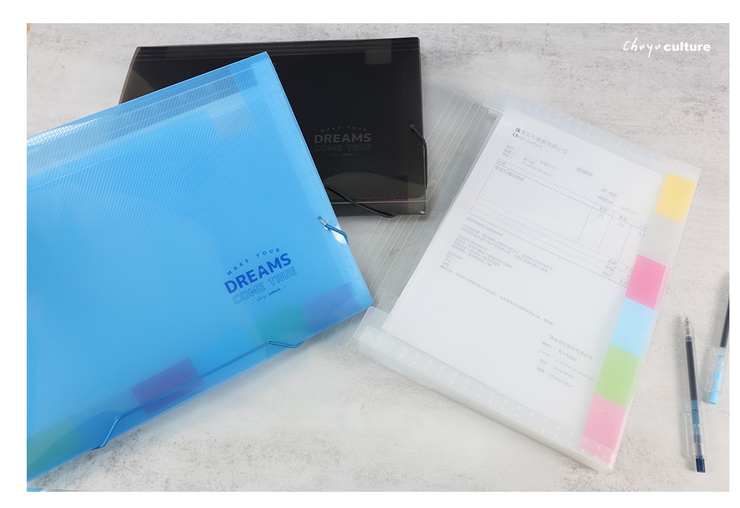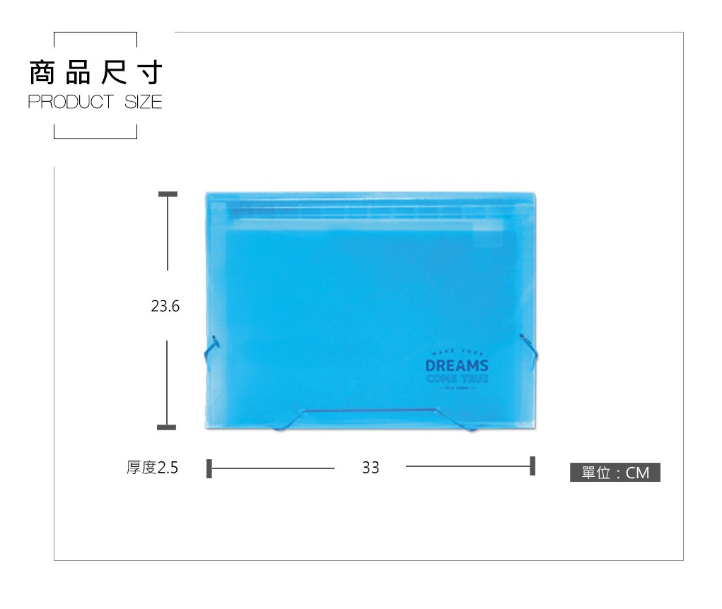 此商品有3種顏色 附6色索引色卡 13格收納空間,可詳細分類及收存 可收納A4文件、水電繳費憑證、考試卷等紙本 包覆式鬆緊帶,防止文件散落