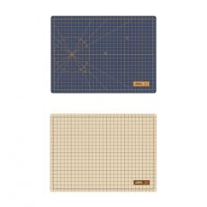 尺寸:300x220mm,厚3mm 包裝:1片/袋 雙色雙面兩用設計 內建10mm格線,輕鬆對準尺寸 常用紙張及名片尺寸對照 三段斜角(30°、45°、60°)及對稱標示 防滑材質、自動癒合、霧面不反光