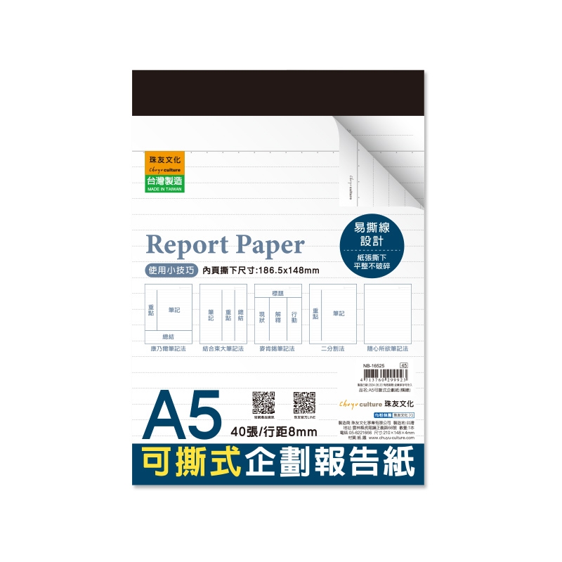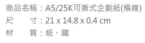 A5/25K可撕式企劃紙(橫線)/報告紙 - 40張 NB-16525