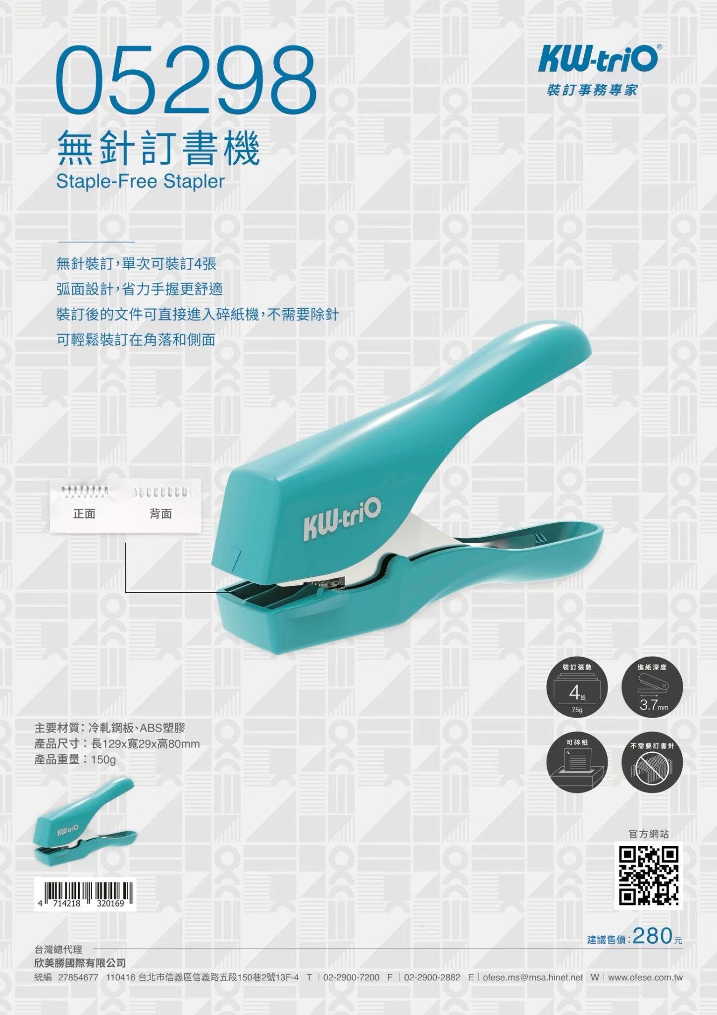 KW 無針訂書機-壓紋 #05298
