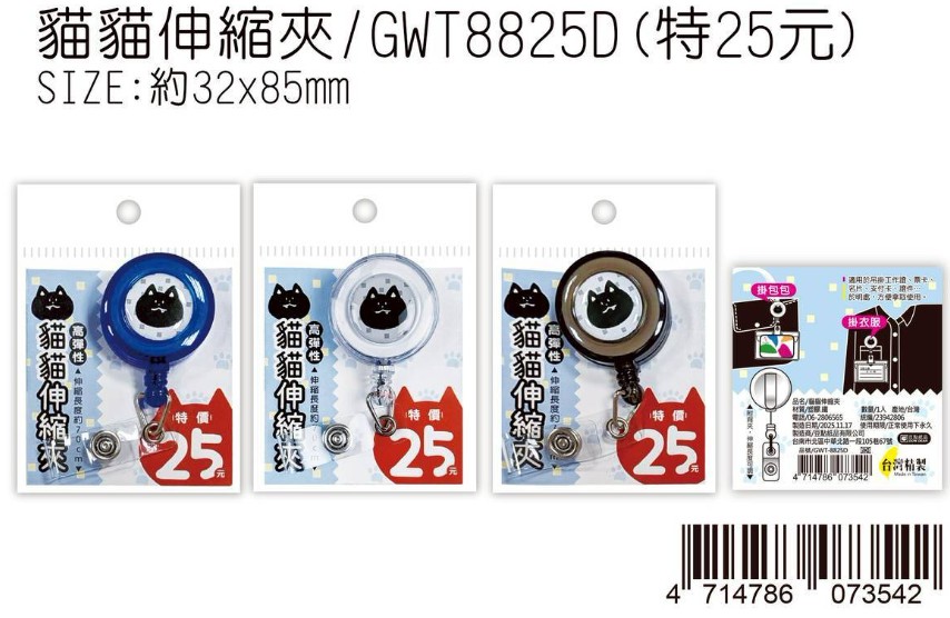 特價25元 貓貓伸縮夾 GWT-8825D 伸縮名牌夾