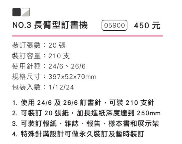 KW NO.3 長臂型訂書機 #05900