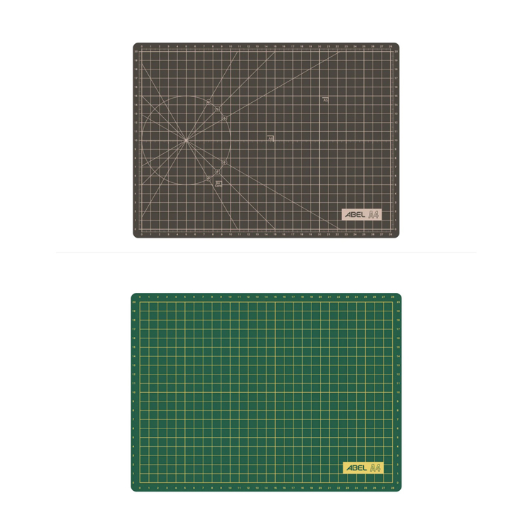 單位:片 尺寸:300x220mm,厚3mm 包裝:1片/袋 雙色雙面兩用設計 內建10mm格線,輕鬆對準尺寸 常用紙張及名片尺寸對照 三段斜角(30°、45°、60°)及對稱標示 防滑材質、自動癒合、霧面不反光