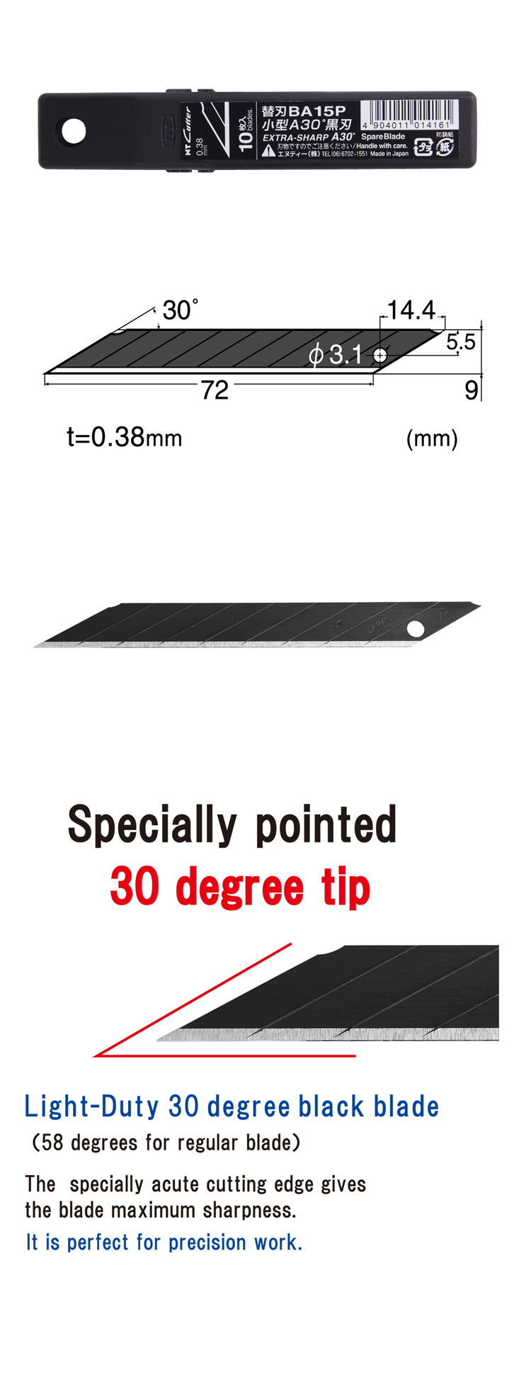 NT BA-15P 超銳角30黑刃美工刀片(10入)