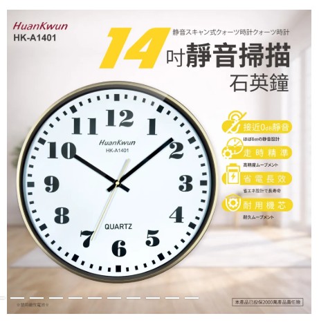 【HuanKwun】HK-A1401|14 吋靜音掃描石英鐘|靜音掃描 × 走時精準 × 大字清晰